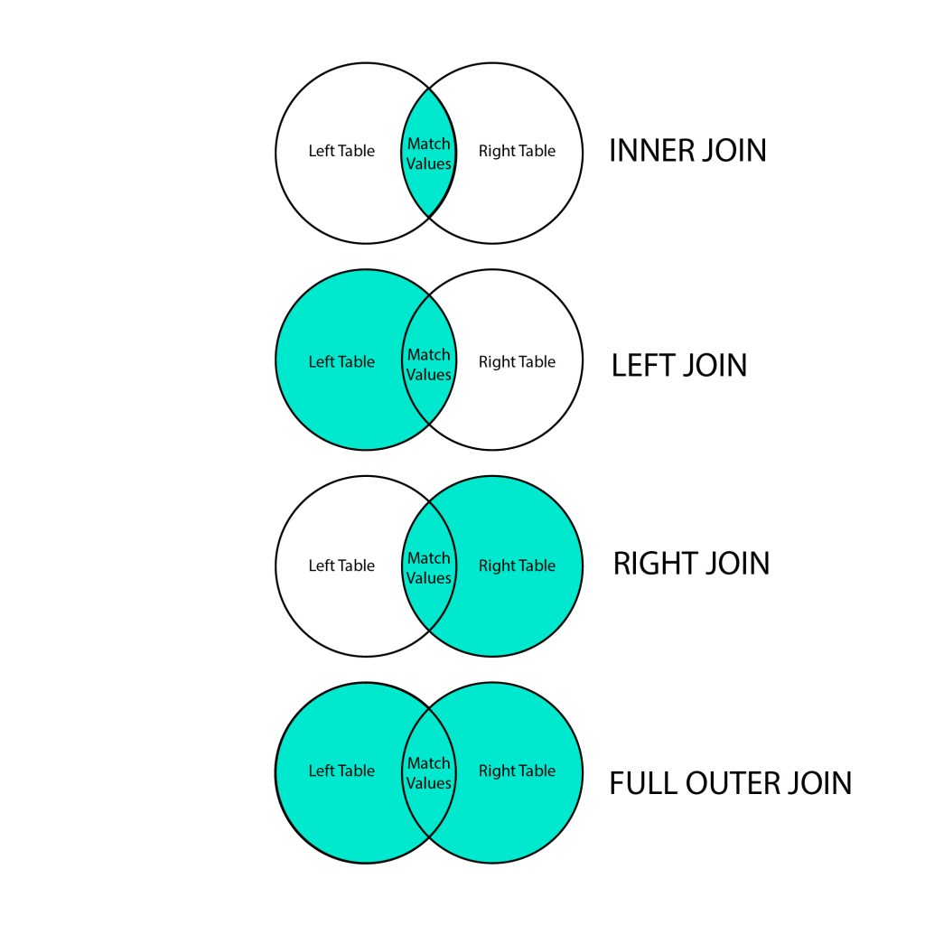 The below image may help to visualize the data that is retrieved for each type of JOIN: